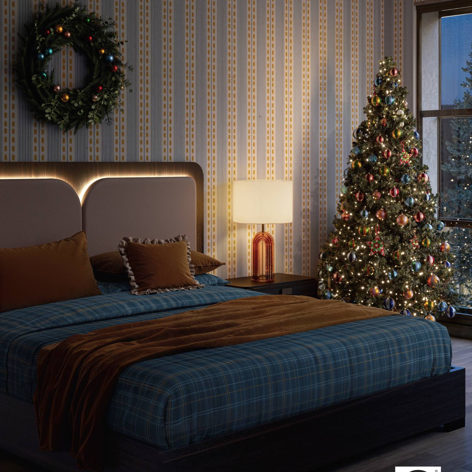The Tullia bed features a refined headboard in eco-leather and travertine eco-stone, enriched by an integrated lighting system that extends to the nightstands. Two discreet drawers provide extra storage, ensuring both practicality and elegance. With its sculptural design and warm illumination, it creates a...