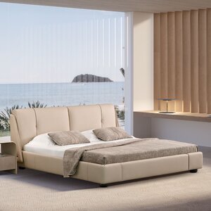The River bed combines a solid walnut, oak or ash frame with an upholstered headboard. Its tapered solid wood base ensures stability and lightness. The wooden frame outlines the headboard, creating a balance between wood and fabric. Dimensions King Bed 86-3/8"w x 86"-1/2"l x...