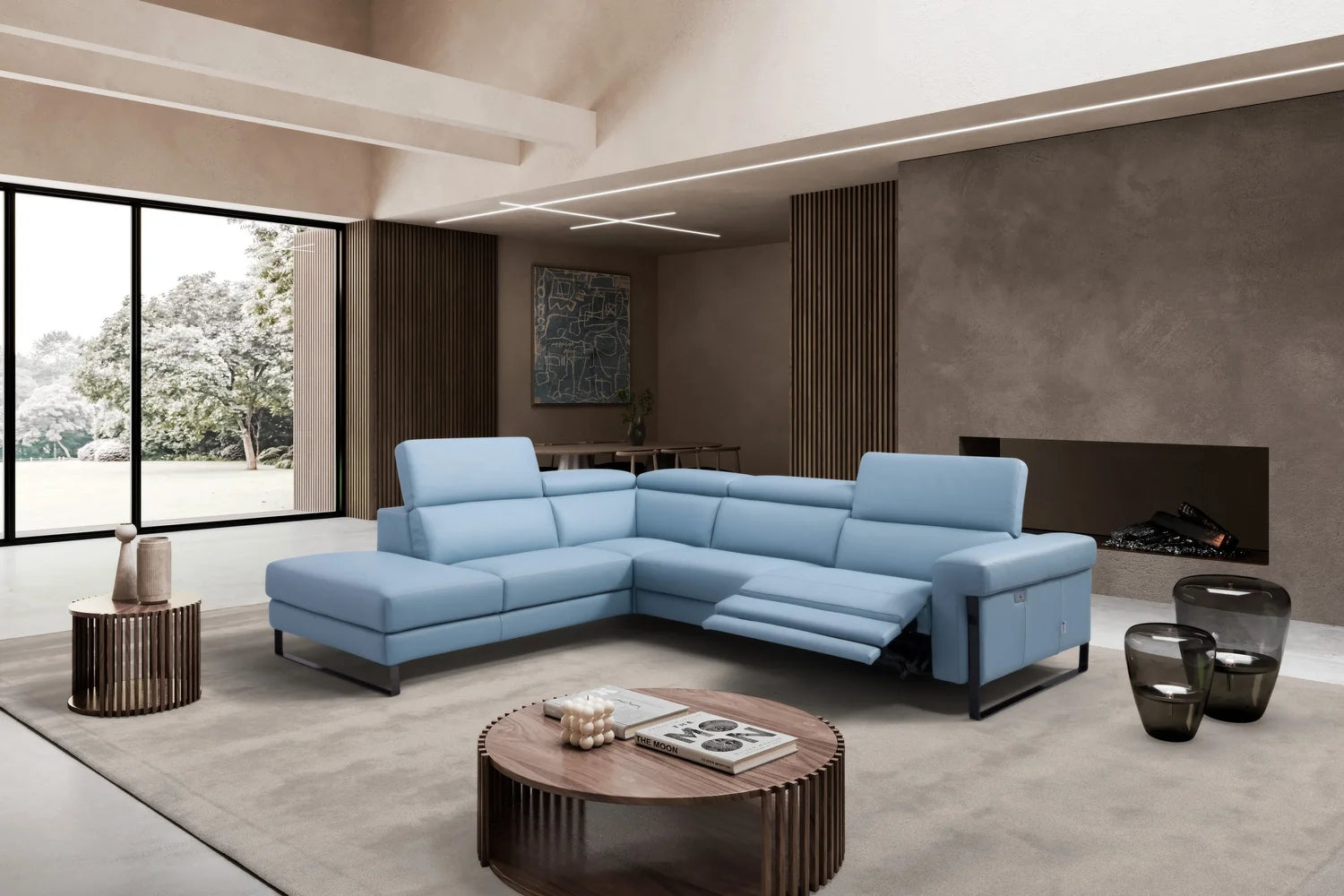 Contemporary style, Celeste is a combination of comfort and functional movement thanks to his reclining mechanism. The arms are enriched by a metal structure, available in several finishing to immediately capture attentions in your living space.
